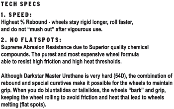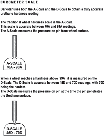 Tvrdost (Durometer). Kolečka pro skateboardy jsou poměrně tvrdá v porovnáních s kolečkami pro in-line brusle. Tvrdost je označována písmenem A a D za označením milimetrů například 54x38mm 90A označuje kolečka z průměrem 54mm šířkou 38mm a tvrdostím stupněm 90. zatímco pro kolečkové brusle se používájí tvrdosti od cca 74A do 85A u skateboardů jsou nejpoužívanější tvrdosti 90-101A. čím nižší číslo tím měkčí je kolečko. Všechna kolečka nad 95A jsou tvrdá. Čím tvrdší je kolečko tím více může jezdec "vyskočit" (pop-up) ale tím tvrdší bude dopad. Měkčí kolečka absorbují více nerovností terénu, nedovolují vysoké skoky a jsou lepší pro začátečníky nebo street kde není kladena priorita na triky. Tvrdší kola jsou určena pro pokročilé a profesionální jezdce, na hladké povrchy (mramor) je třeba volit skate kola s dobrou přilnavostí (gripem). Opět nejvíce záleží, co jak komu vyhovuje.