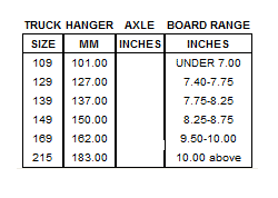 šířka podvozků (osiček) je udávána většinou v palcích (1 palec = 2,54cm) nebo v milimetrech dle výrobce a regionu. Šiřka osiček má vliv na stabilitu a točivost podvozků, předevšímse ale šířka podvozků volí dle rozměru desky tedy její šířky. V tabulce níže najdete obecné doporučení pro šířku podvozků dle šířky desky. V položce inches je šířka desky a v položce "mm" je doporučená obecná šířka trucků. 127mm se rovná šířce trucků 5" (jedná se o šířku osiček, nikoli celých podvozků). Tato doporučení jsou pouze obecná. Rádi vám poradíme vhodný rozměr pro vaše potřeby, kontaktujte nás.